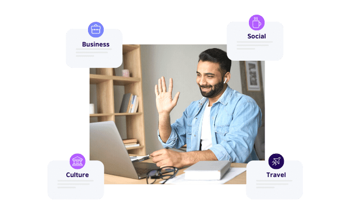Choose how you want to study. You can either book small group classes and study with learners from around the world or improve your English in 1-to-1 private classes.
