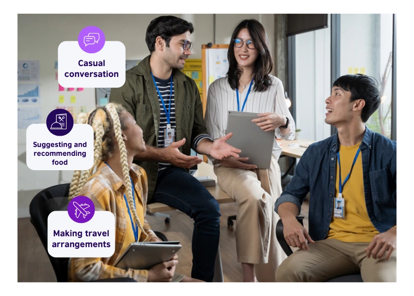 최대 정원 10명의 학생들과 함께 하는 55분 그룹 수업 - 그룹 수업에선 정해진 학습 주제와 관련한 말하기 및 듣기를 집중적으로 훈련합니다. 여러분과 비슷한 영어 실력을 갖춘 학생들과 함께 수업이 진행되며, 영어로 대화에 참여한 후 그에 대한 발음 교정, 어휘교정, 문법교정을 튜터로부터 실시간으로 받게 됩니다. 수업 마지막에 튜터는 여러분이 추가적으로 연습을 할 수 있도록 학습 자료를 공유합니다.