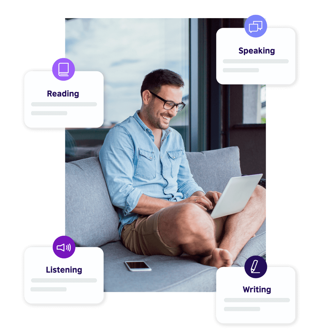 웹사이트에 준비된 연습들, 문법 및 발음 교정을 위한 웨비나, 추가 화상영어 클래스를 활용해 여러분의 스피킹, 리스닝, 리딩, 그리고 라이팅 실력을 향상하세요. 영어 초급자부터 상급자 레벨까지, 언어 전문가가 고안한 수준 높은 학습 자료들을 이용하실 수 있습니다.