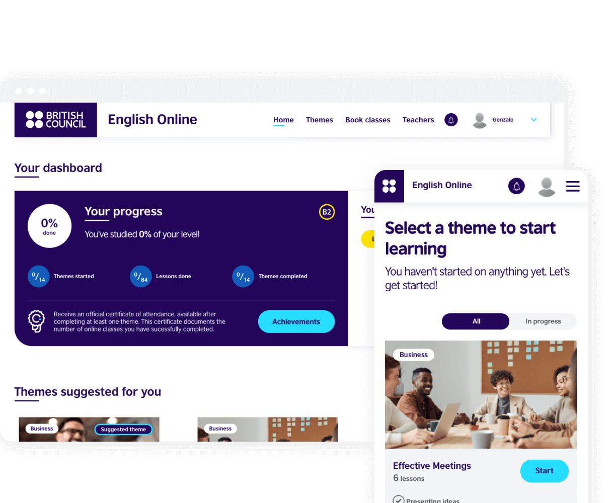 Depending on your level, you will be given lots of themes to choose from. Remember, you can take classes from as many themes as you like to customise your course.
